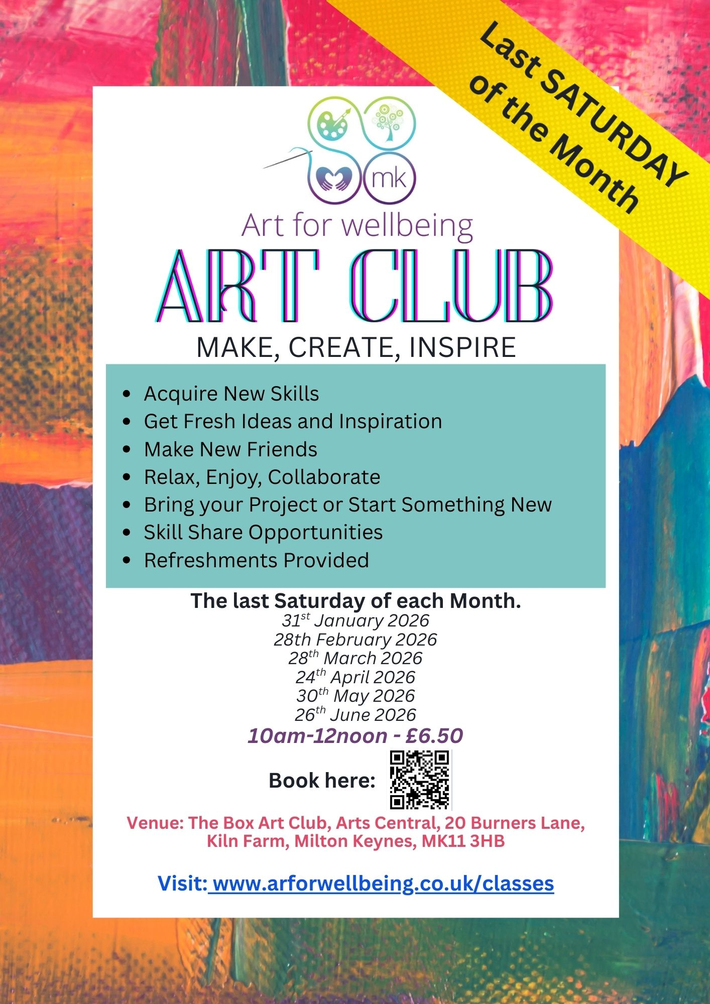 Transform your Saturdays into a creative haven with our Saturday Art Club – a monthly class held at The Box Art Club at Art Central, Burners Lane, Kiln Farm. In this workshop, you will have the opportunity to paint, draw, and craft in a supportive and friendly environment, ideal for both beginners and seasoned artists.